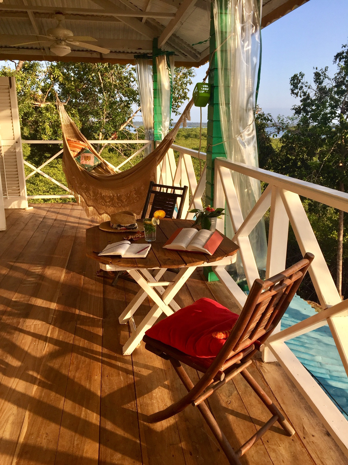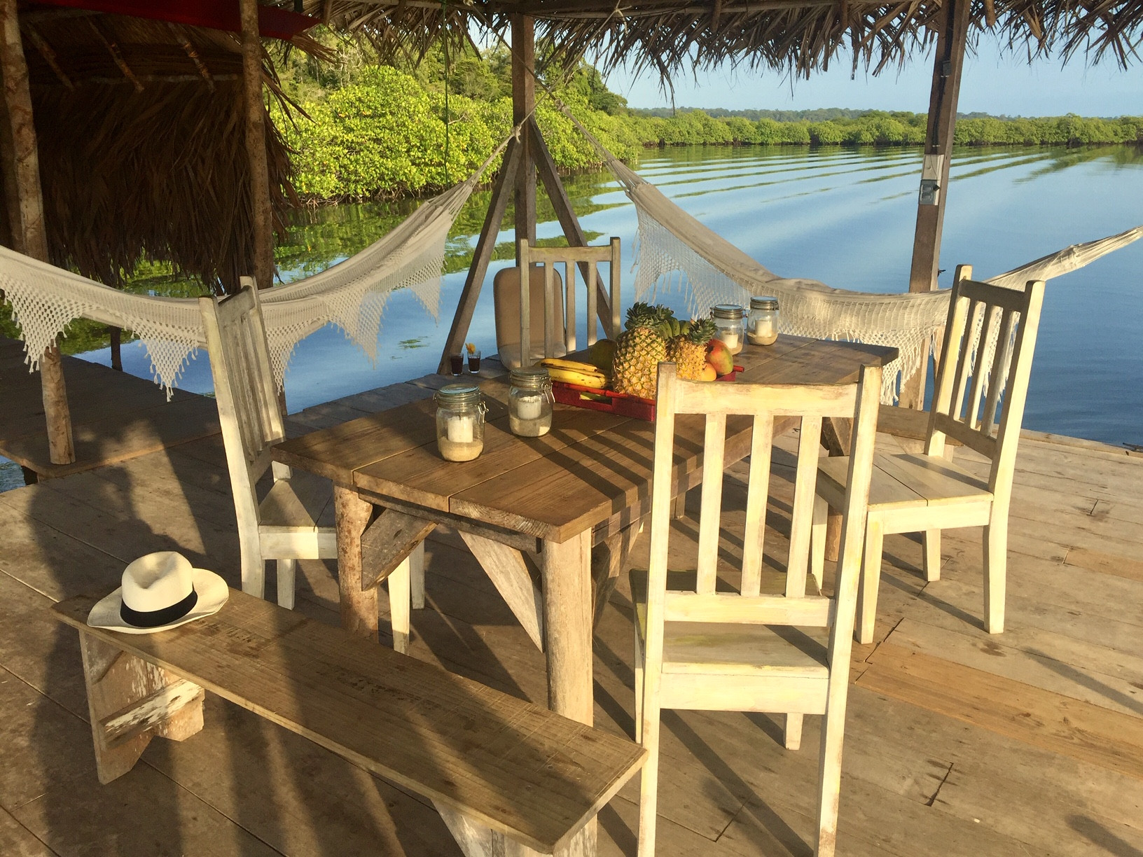 En el exterior, podrás relajarte en el embarcadero flotante, darte un refrescante baño en las aguas cristalinas o contemplar los atardeceres más impresionantes del Caribe.